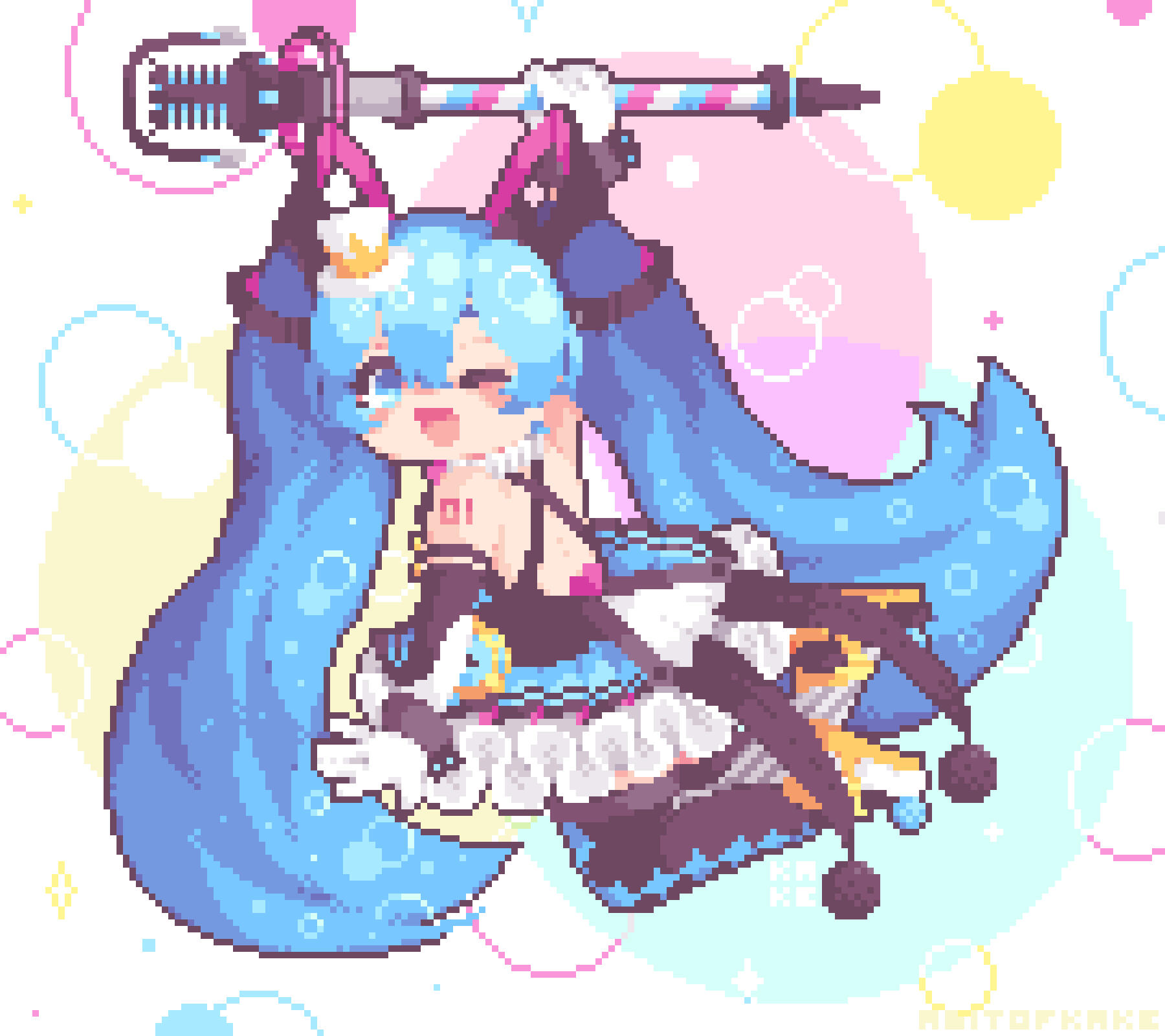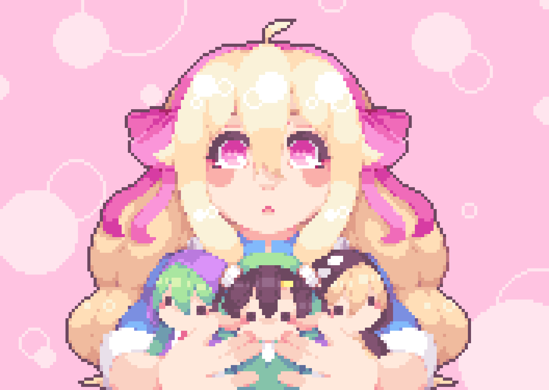 As a pixel artist I love to shrink my favorite things into tiny little images, then turn them in cute animations and bring them to life as stickers and other fun goodies!